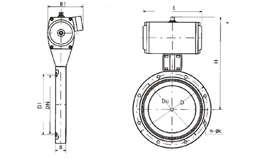 GIQ型-氣動高真空蝶閥主要零件材料 閥體、閥蓋、閥桿:碳鋼或不銹鋼 密封件:丁腈橡膠、氟橡膠。 GIQ型-氣動高真空蝶閥外形及連接尺寸mmJB919